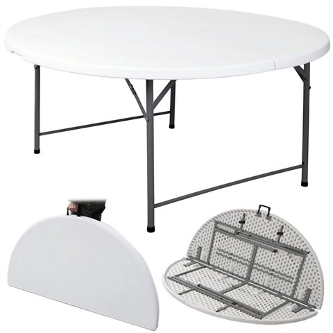 6FT popüler darbe kalıplı açık otel restoran mobilya dayanıklı beyaz plastik ziyafet katlanır yuvarlak masa